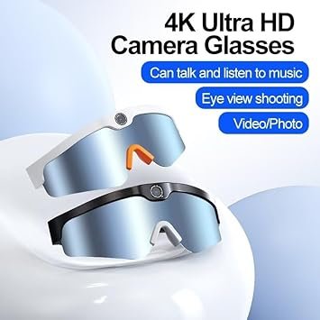 4K Camera Glasses, 2025 AI Smart Sunglasses with 128GB Memory Card, Video Glasses with UV Protection for Outdoor Activities & Travel, Sports & Action Video Cameras- XV15 White Frame