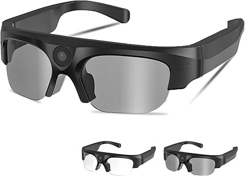 4K Camera Glasses,2025 AI Smart Sunglasses with 256GB Memory Card Video Glasses with UV Protection for Outdoor Activities &Travel Sports &Action Video- XV16 Black&Transparent Lens Included