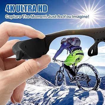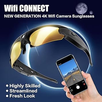 4K HD Sport Camera with WiFi, Camera Sunglasses with UV400 Protection Polarized Lenses+Clear/Yellow Lens for Outdoor Sports Supports iOS&Android (64GB TF Card Included)