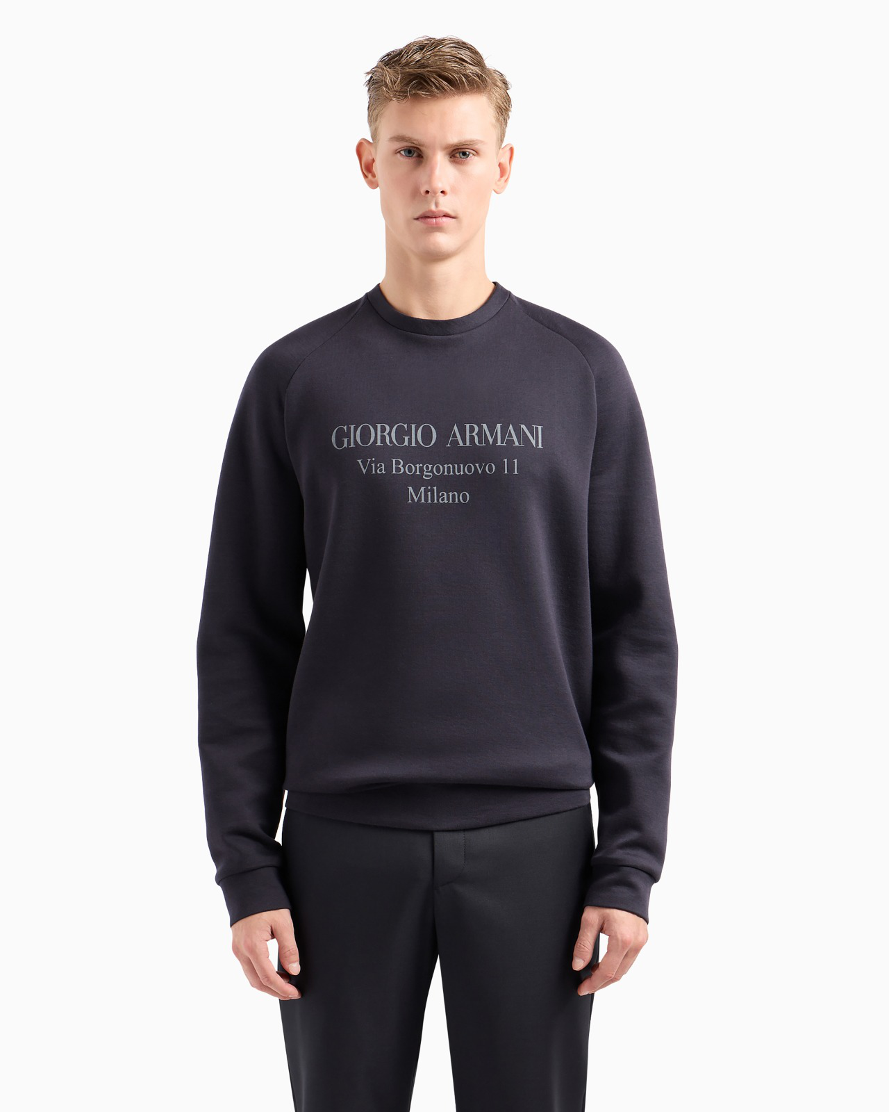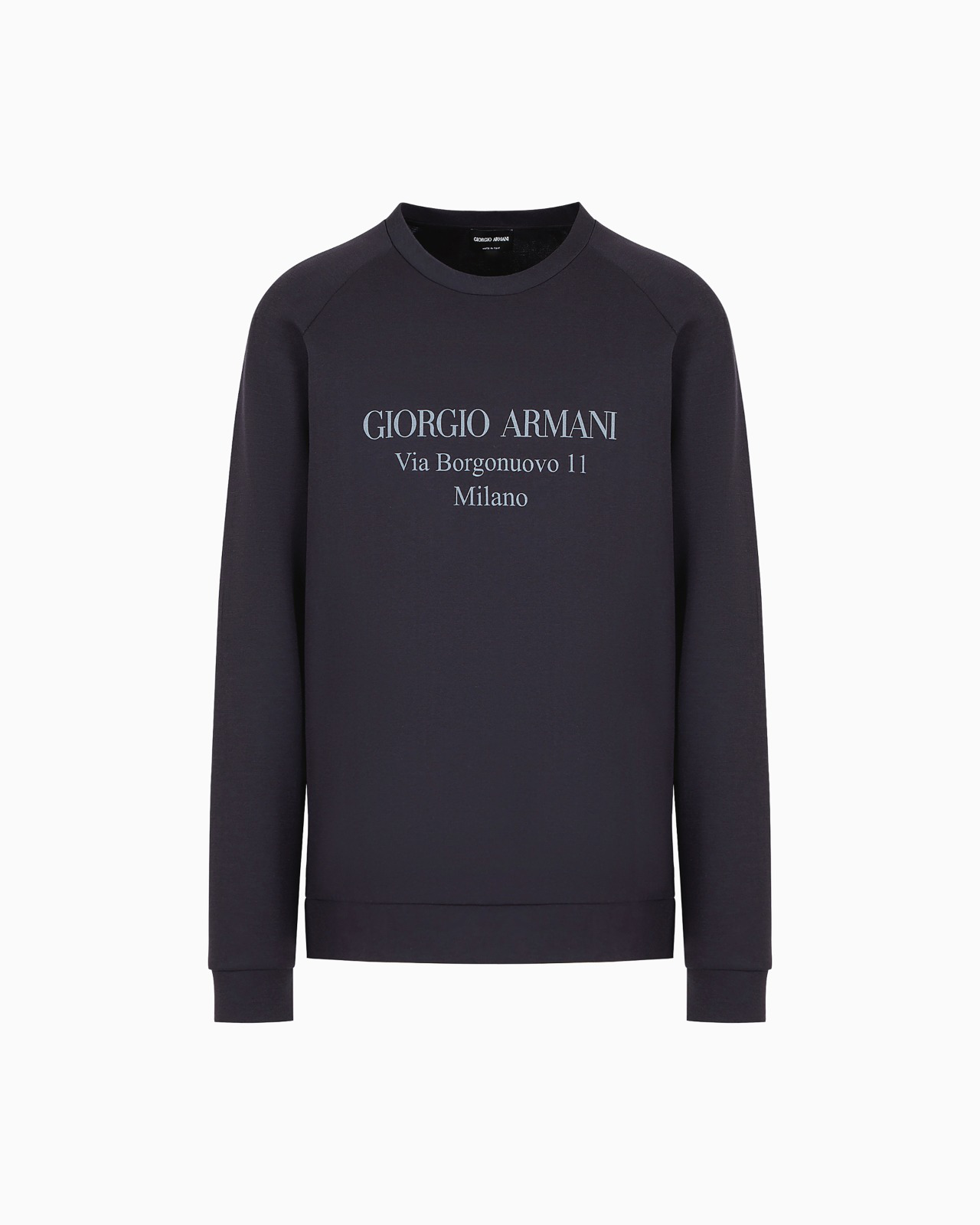 Sweatshirt in soft cotton featuring a contrasting print of the brand’s historic address: Via Borgonuovo 11 Milano. This comfortable, crew-neck style is perfect in laid-back, casual looks.