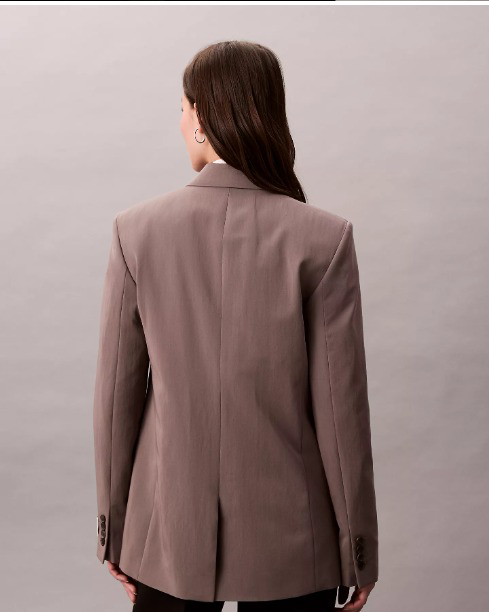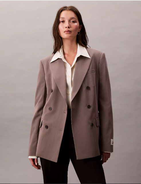 From Calvin Klein Studio. Inspired by craft and premium materials. The modern blazer. Double-breasted with peak lapels. Refined in a wool blend with a relaxed silhouette.