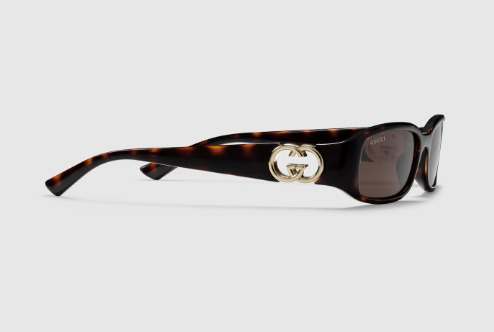 - Shiny dark tortoiseshell injection temples with Interlocking G