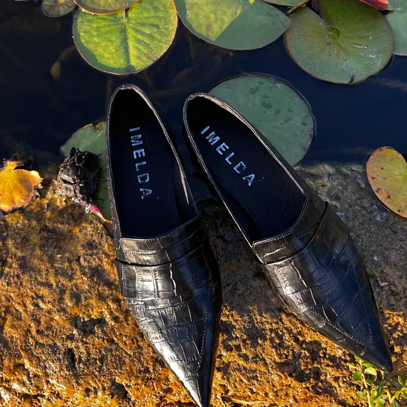 Handmade Shoes, Croco Textured Leather, Pointed Toes