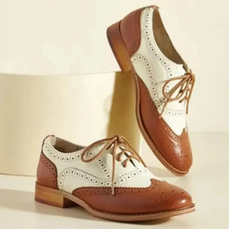 Handmade Unisex Genuine White & Tan leather Oxford Lace Up Wingtip Dress Shoes Handmade Unisex Genuine White & Tan leather Oxford Lace Up Wingtip Dress Shoes