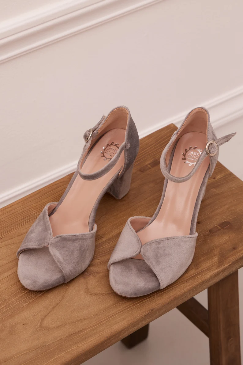 Local taxes included (where applicable) Gray Wedding Shoes, Velvet Bridal Shoes, Peep Toe Heels, Gray Heeled Sandals, Gray Shoes for Wedding, Block Heel Sandals, “Kore” Custom Made