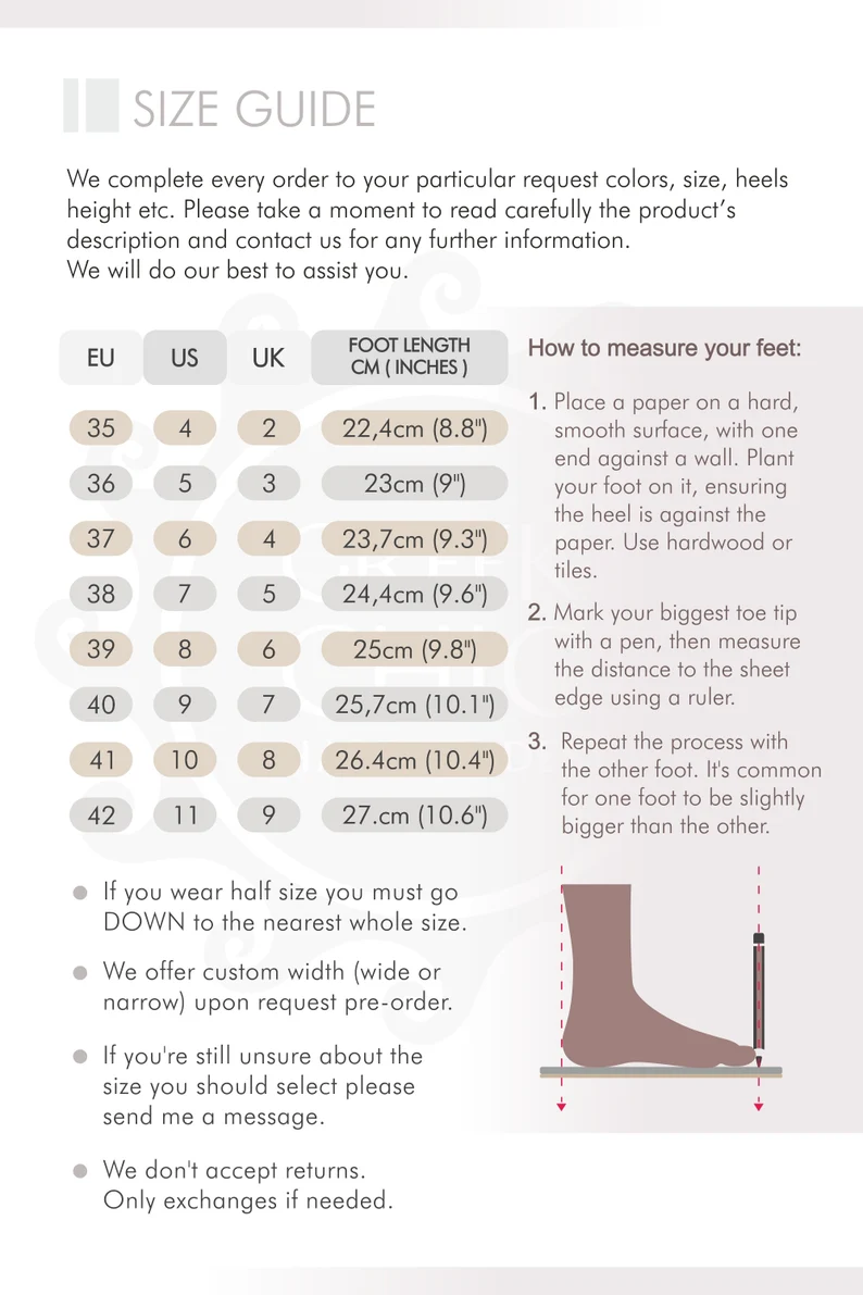 • Heel comes in 7 cm (2.76 inches), 5cm (2 inches), and 1,5cm (0.6 inches)