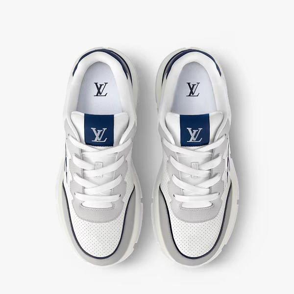 The LV Classic sneaker is made of smooth calf leather with pinpoint perforations creating a refined look. The upper is complemented by touches of color, notably on the large LV Initials on the side and the leather trim at the back, which is stamped with the Louis Vuitton signature. A lightweight rubber outsole completes this model.