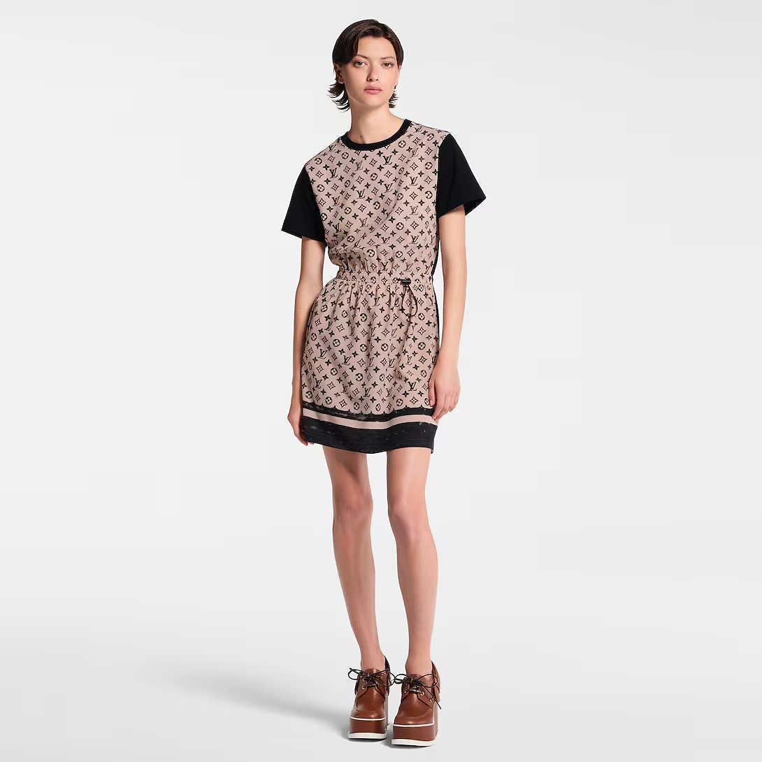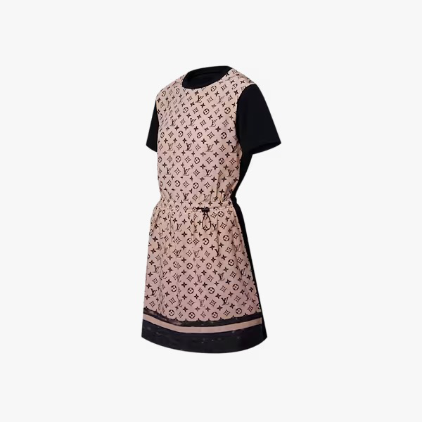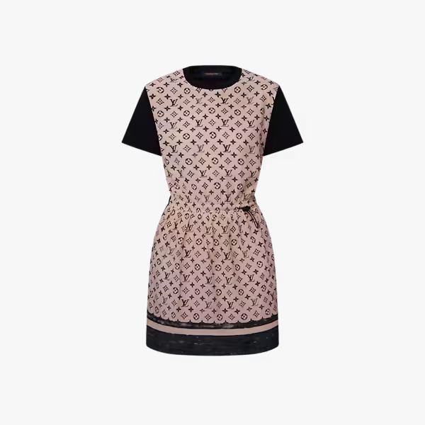 This T-shirt dress is casual and comfortable in fluid cotton jersey. The front is highlighted in silk featuring the iconic Monogram motif in a romantic seasonal shade, while the contrasting short sleeves, crew neckline and hem introduce a sporty feel, which is emphasized by the adjustable drawstring waistline.