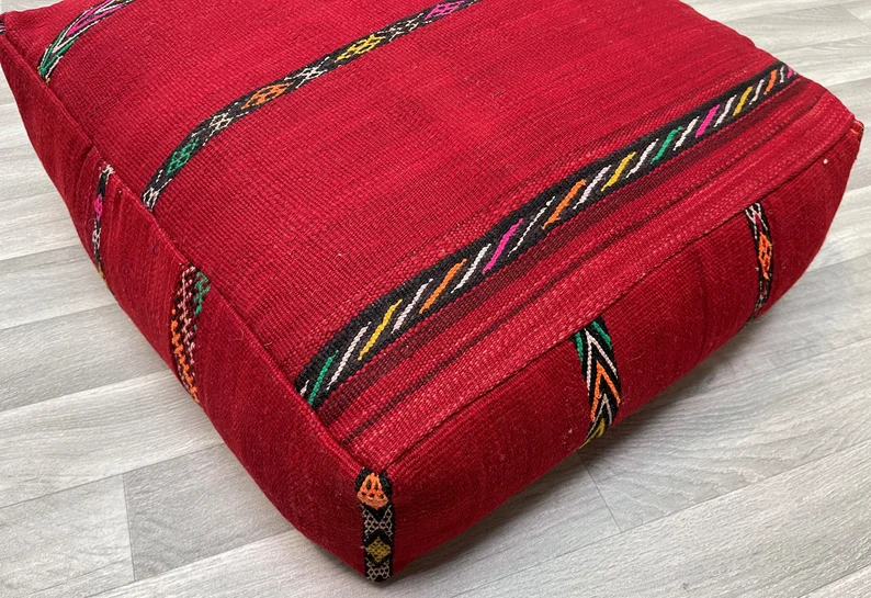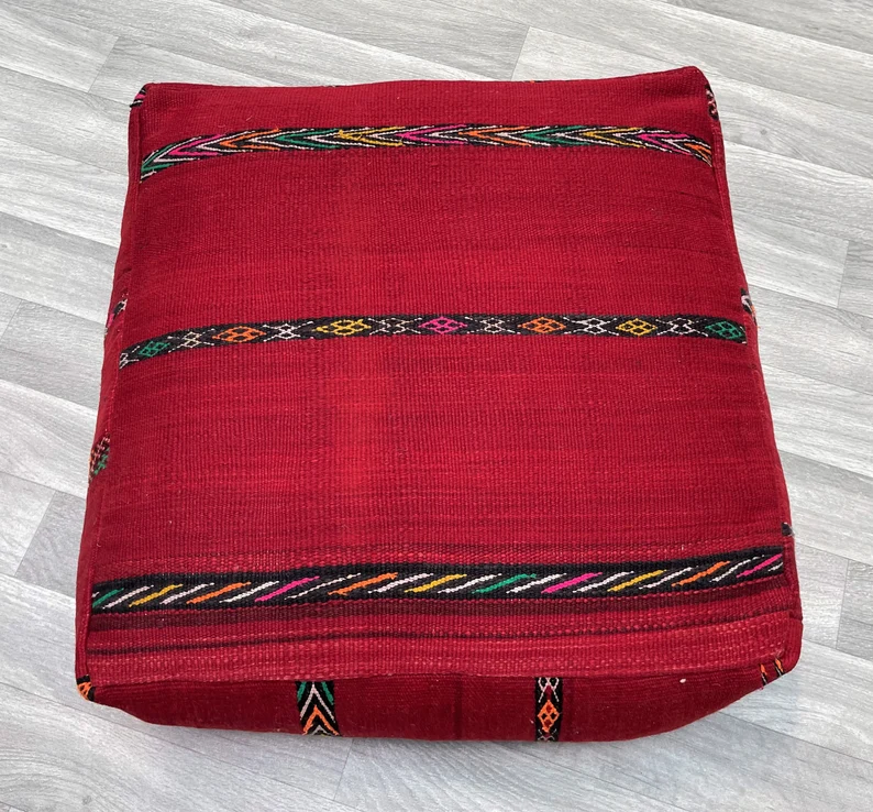 Moroccan Kilim Pouf 24 X 24 INCHES – Free shipping – Vintage berber kilim pouf – handmade moroccan pouf – Living room decor – Moroccan pouf