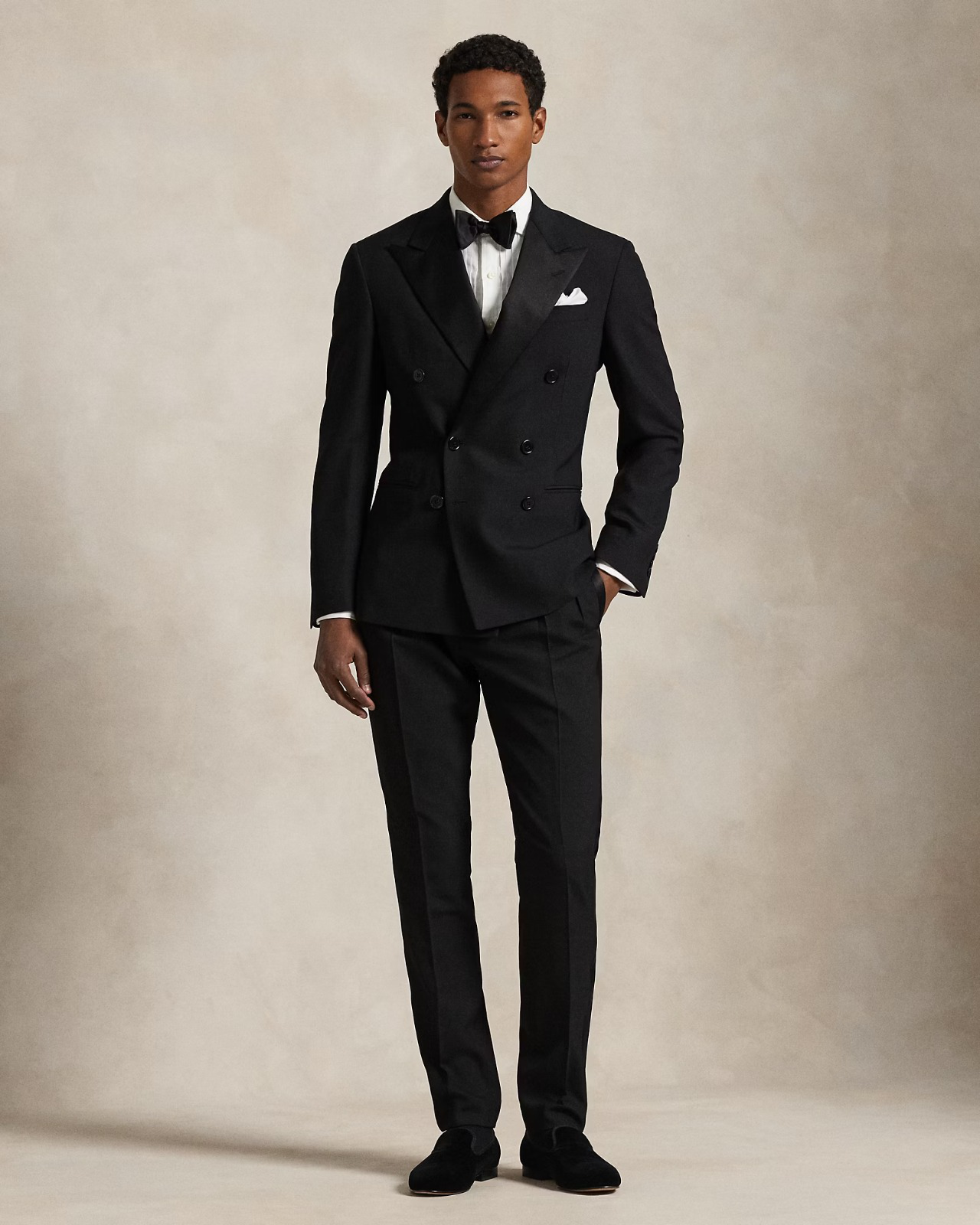 Our two-button Polo suit marries impeccable craftsmanship with soft wool twill. Rolled lapels and hand-sewn natural shoulders distinguish the half-canvassed jacket, while the flat-front trousers have a lean silhouette.
