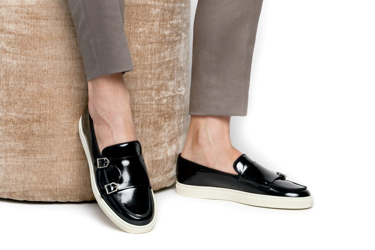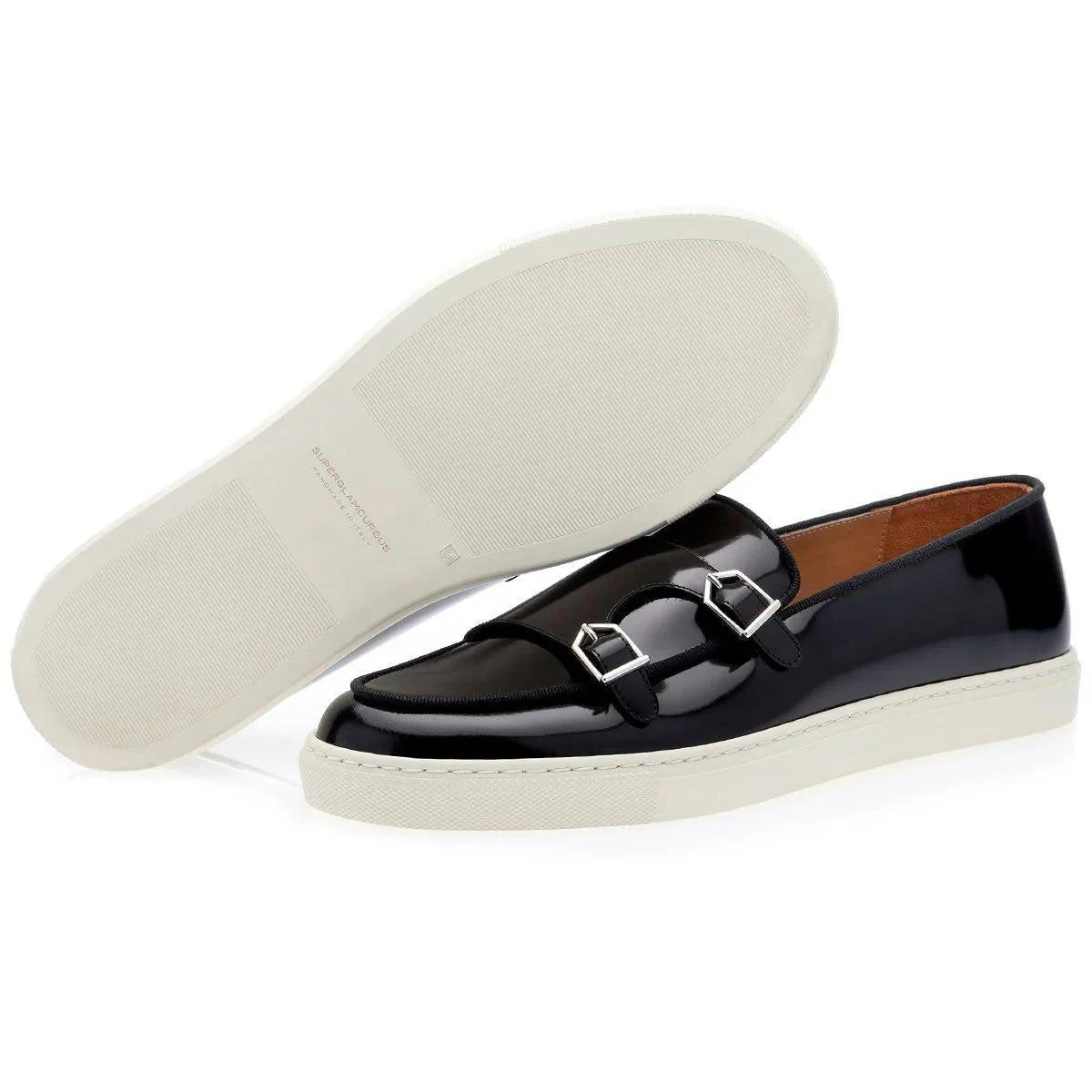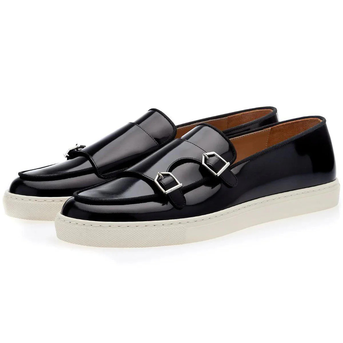 - Polished Calf-Skin Double-Monk with Silver Buckles