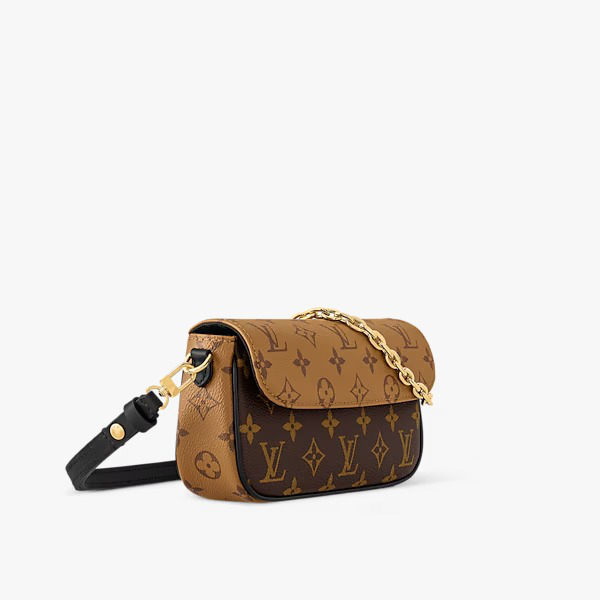This edition of the Wallet On Chain Ivy showcases the House’s signature Monogram Reverse canvas, offering a directional take for the season. The elegant style is defined by a removable gold-toned chain that matches the iconic LV Initials. The organized interior reveals a flat pocket with three card slots, ideal for securing everyday essentials.