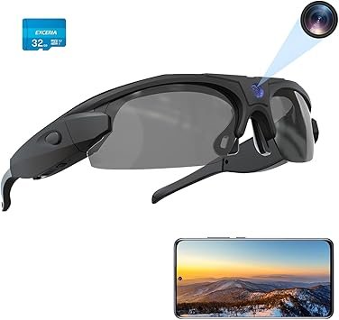 WiFi Camera Sunglasses, 4K Video Glasses HD 1080P with Polarized UV 400 Lens for Cycling, Camping, Driving,Traveling(Include 32GB Card)