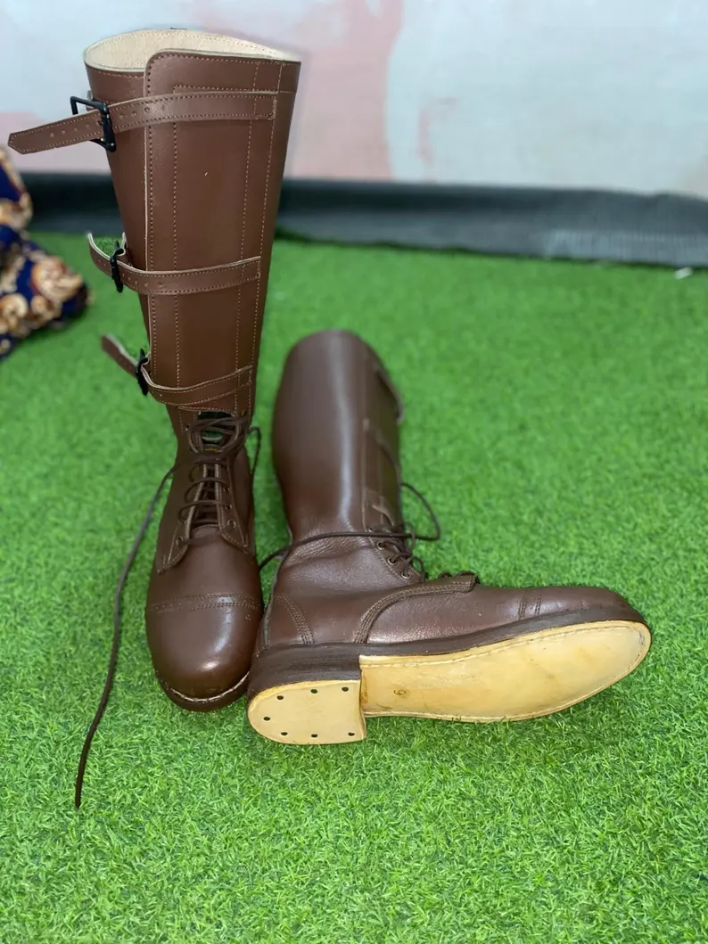 Experience unmatched craftsmanship and authentic military heritage with the WWII US M-1940 3-Buckle Cavalry Boots, expertly handmade by Marcocraft. This faithful reproduction of the iconic boots worn by U.S. troops—and brought to the big screen by Brad Pitt in Fury—is crafted for those who value quality, history, and timeless design.